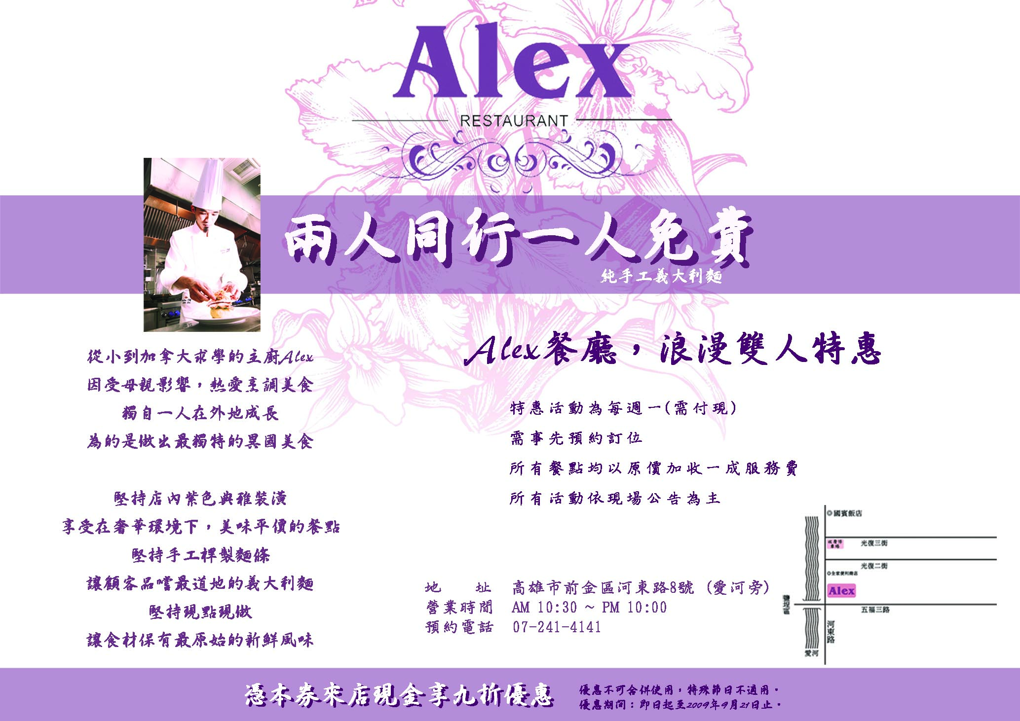 Alex私房料理,位於高雄市河東路8號(鄰近愛河畔),在此提供您本餐廳Alex主廚私房料理心得及美食分享推薦!